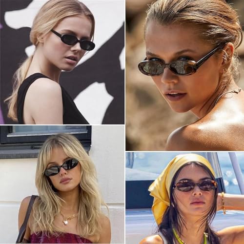 1 Pack Retro Oval Sunglasses for Women Men, Fashion Small Oval Sunglasses Vintage Lightweight Narrow Shades Sun Glasses 4