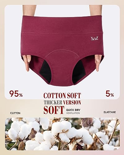 Rdiner Heavy Flow High Absorbency Period Underwear Women, Leakproof Panties Postpartum Menstrual Hipster Briefs Teens 3 Pack 4