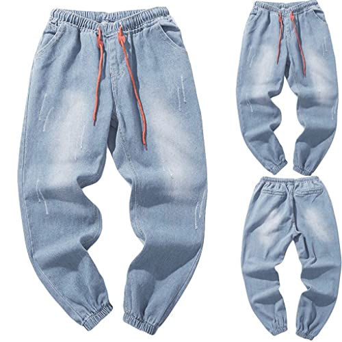 HOT ! Men Sweatpants Casual Autumn Denim Cotton Vintage Wash Hip Hop Work Trousers Jeans Pants Mens Sweatpants