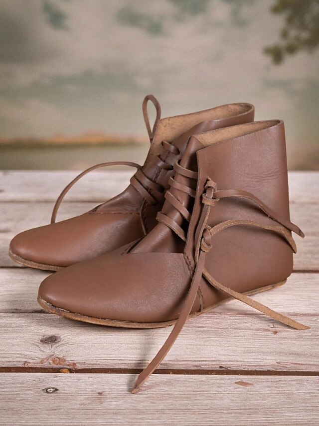 HOT ! Women's Brown Faux Leather Medieval Lace-Up Boots, Viking Style Retro Renaissance Footwear for LARP, Reenactments & Historical Festivals