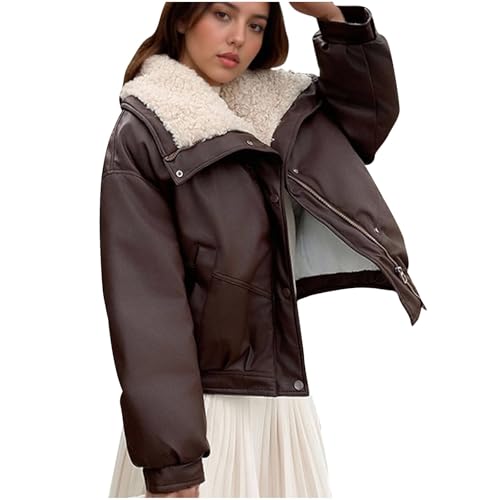 More information about Sherpa Jacket for Women Winter Warm Coat Fleece Lined Coat PU Winter Jacket Plus Size Sherpa Casual Outwear
