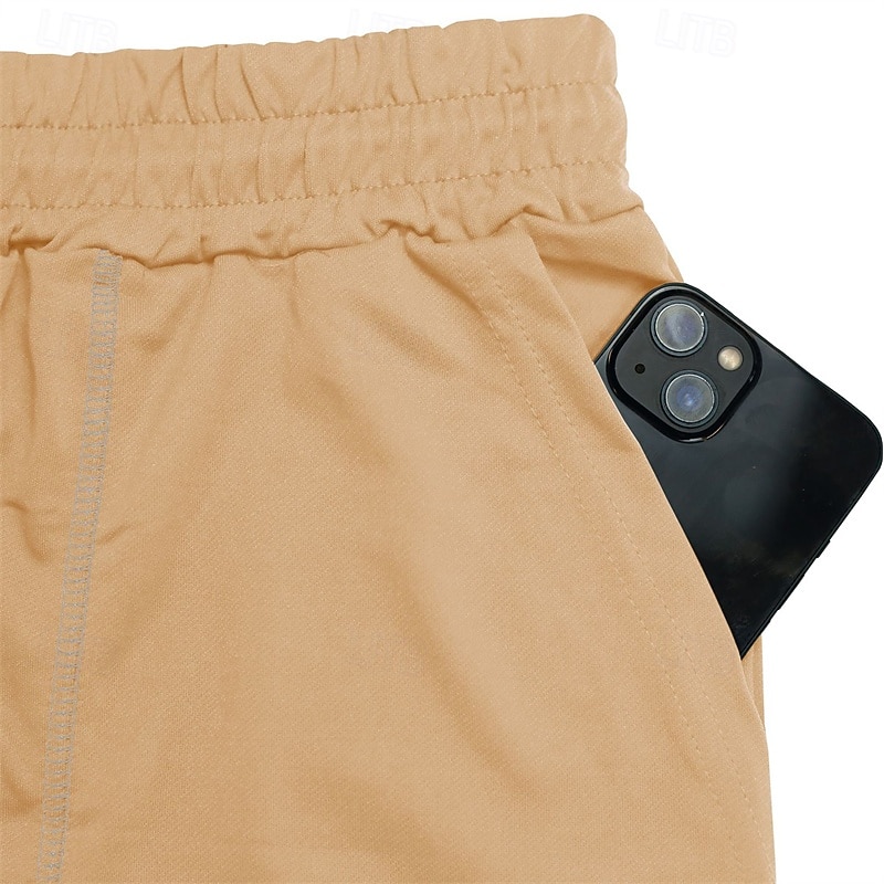 Men's Tracksuit T shirt & Shorts Outfit Set Crew Neck Outdoor Daily Sports Pocket Drawstring Plain Black Brown Light Grey Polyester Activewear Streetwear Lightweight Summer 6