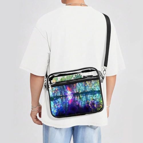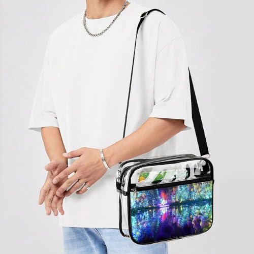 HOT ! Large Unicorrn Background Large Crossbody Bag Clear Stadium Bag Anti-Theft Side Shoulder Bags Messenger Bag with 2 Compartments