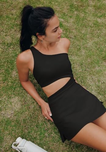 LAMISSCHE Womens Tennis Dress Built with Bra and Shorts Workout One Shoulder Mini Dress Athletic Cut Out Golf Dress 1