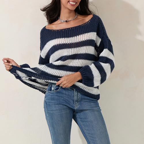 • Design: This baggy sweater features long sleeve crew neck contrast color striped pullover top, round collar lantern sleeves loose fit chunky knit crop jumper, colorful pinstriped drop shoulder warm cozy sweatshirt, clash color boat neck oversized slouchy knitwear.