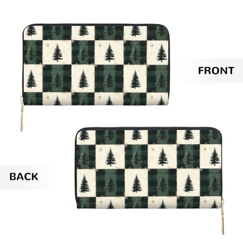 HOT ! Leather Thin Slim Wallets for Women & Men - Green Christmas Tree Plaid Print Card Wallet Holder with Zipper