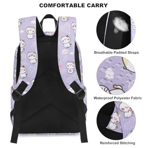 Cat Girls Backpack for School, Kids Elementary School Bag Teens Middle Bookbag Set with Lunch Box Pencil Case 5