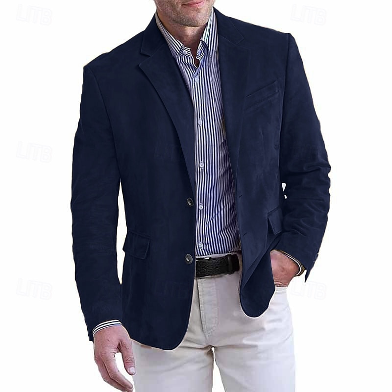 Men's Faux Suede Jacket Faux Suede Blazer Business Attire Company Party Fashion Casual Fall / Winter Faux Suede Plain Pocket Buttons Comfortable Single Breasted Blazer Dark Navy Brown Green khaki 12