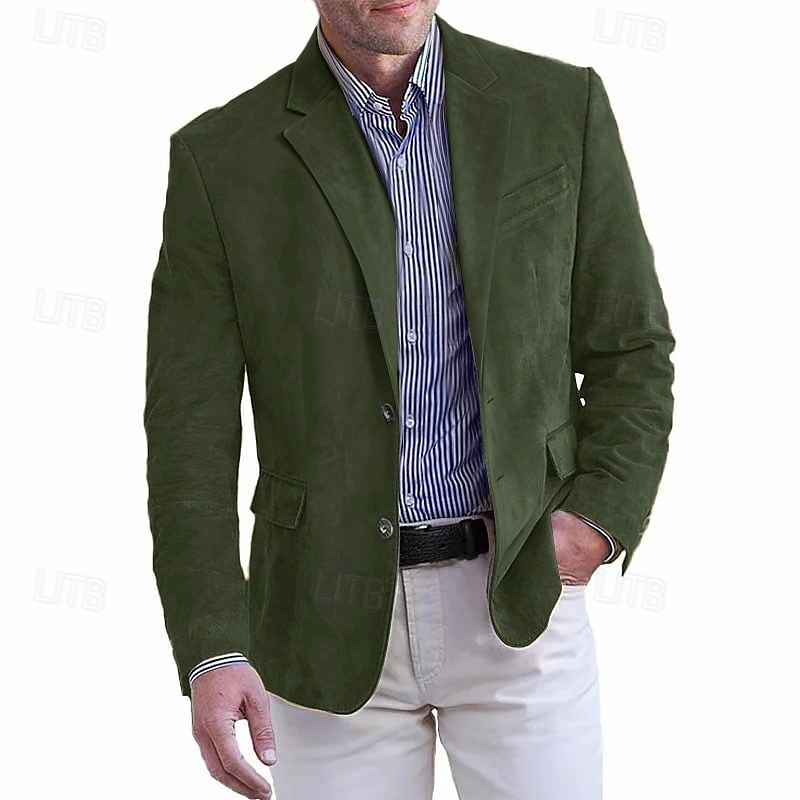 Men's Faux Suede Jacket Faux Suede Blazer Business Attire Company Party Fashion Casual Fall / Winter Faux Suede Plain Pocket Buttons Comfortable Single Breasted Blazer Dark Navy Brown Green khaki 1