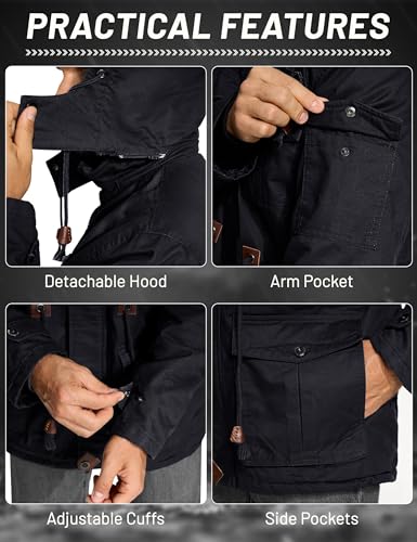 CRYSULLY Men's Winter Casual Thicken Multi-Pocket Outwear Jacket Coat With Removable Hood 6