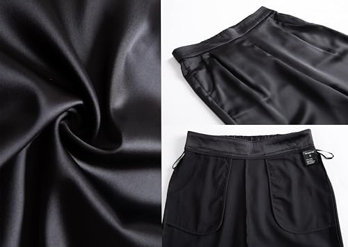 heipeiwa Women's Satin Pants Dress Casual Pleated Pull on High Waist Pants Baggy Front Tapered Trouser 6