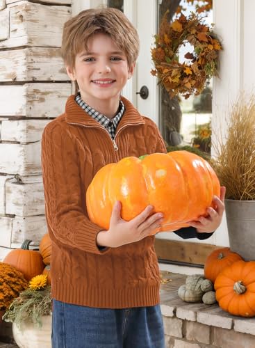 Boys Winter Warm Cable Knit Sweaters Cute Turtle Neck Casual Quarter Zip Pullover 3-14 Years 6