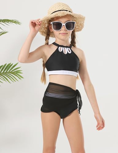 • 🐳 Trendy Design: Featuring a cross-back top with hollow-out neckline, floral prints, and color-block design, this 3 piece bikini set with cover-up skirt offers a stylish, versatile look for girls