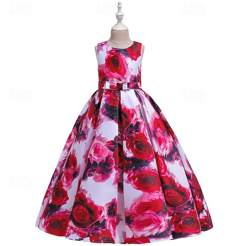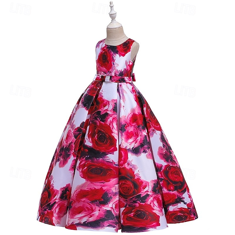 More information about Kids Girls' Party Dress Floral Sleeveless Performance Special Occasion Elegant Princess Polyester Summer Spring 4-13 Years Red Blue Orange