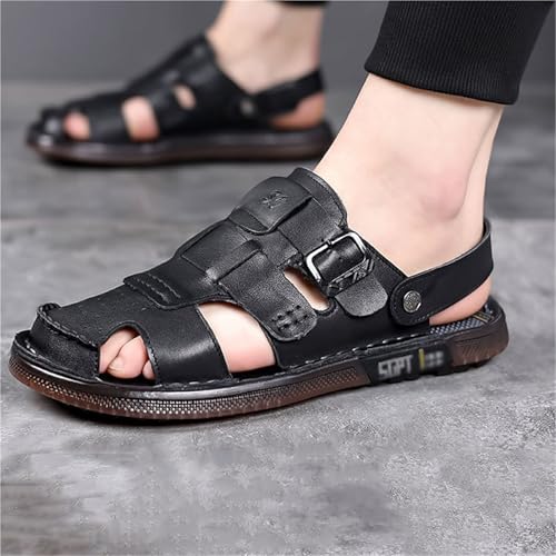 HOT ! CLSQLXYJZC Mens Sport Sandals, Mens Summer Leather Closed Toe Adjustable Arch Support Beach Shoes, Outdoor Anti-Skidding Flat Driving Sandals, for Travel, Beach, Meeting, Shopping, Leisure, Etc