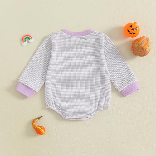 Baby Boy Girl Halloween Outfit Pumpkin Ghost Embroidered Sweatshirt Romper Stripe Waffle Long Sleeve Bodysuit Tops 5