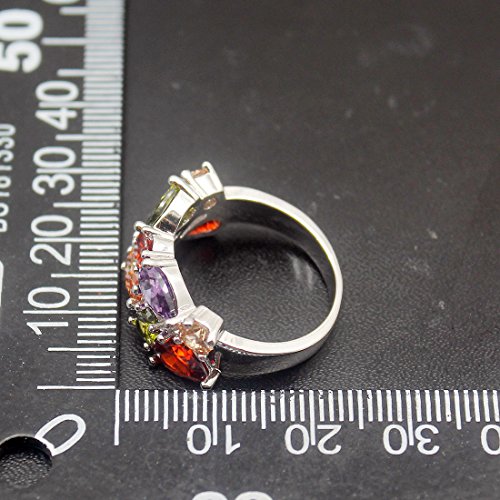 Silver Angel Multicolor Ring Cubic Zirconia Mother's Day Jewelry for Mom Her Band Ring for Women 6 7 8 9 10 7