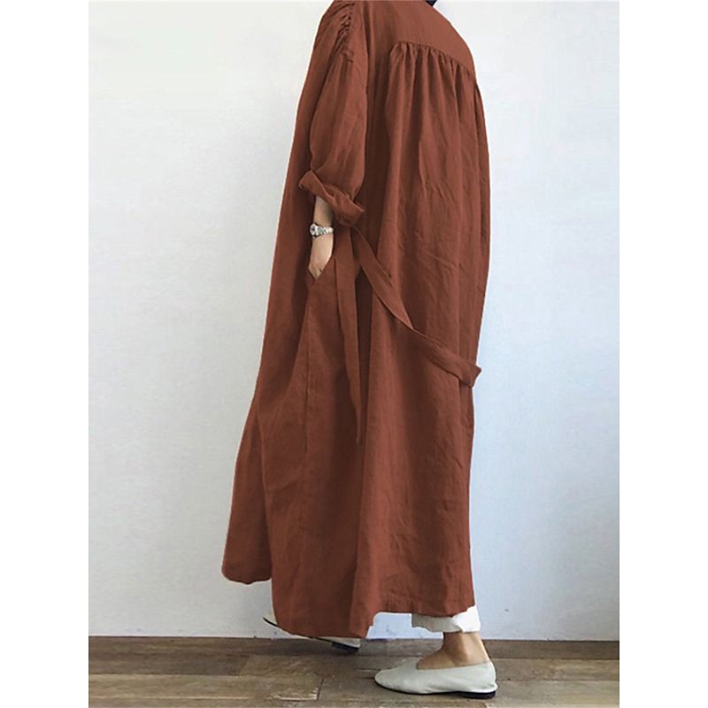 Highlights [Fabric & Material] : Crafted from a high-quality cotton blend, this trench coat offers a soft and breathable experience, suitable for layering in various seasons. The fabric's micro-elasticity ensures a comfortable fit while maintaining a chic, natural drape. [Silhouette & Fit] : Featuring a relaxed, oversized silhouette, this long coat is designed to provide ease and style. The classic waist tie allows for an adjustable fit to suit different body types, while the long sleeves add an element of classic sophistication. [Design Highlights] : The coat’s minimalist design is enhanced by its collarless neckline and practical pockets, making it a functional yet fashionable choice for your wardrobe. Subtle shoulder gathers add a touch of elegance, contributing to its casual yet refined appeal. [Occasions] : Perfect for a wide range of settings, this trench coat is suitable for vacations, casual outings, and outdoor activities. Its versatile style makes it an ideal choice for both daily wear and more relaxed events, seamlessly blending comfort with style. [Size Range] : Available in a comprehensive range of sizes from S to 5XL, this coat is designed to accommodate various body shapes and preferences, ensuring a flattering fit for all.