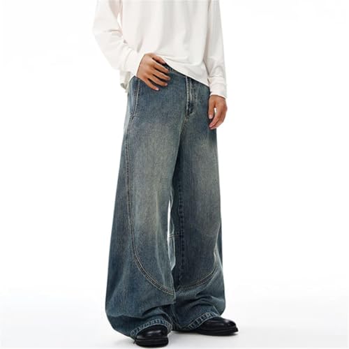 More information about Men's Casual Denim Jeans, Patchwork Design, Solid Color, Wide Leg, Trendy Casual Fit