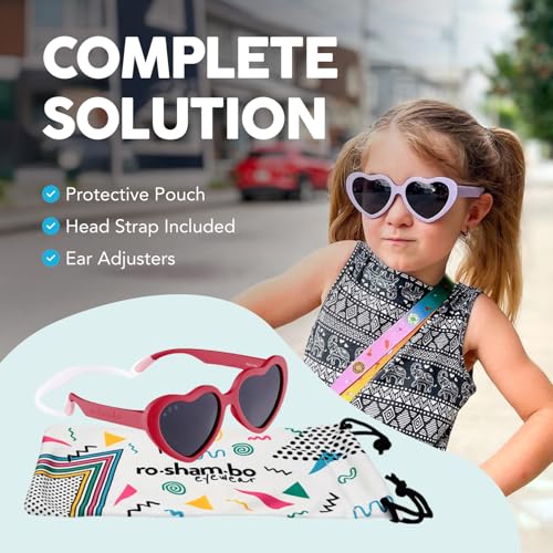 ROSHAMBO Unbreakable Baby Toddler Heart Sunglasses with Strap – Infants 0-24 months Girls Boys 2-4 years – Polarized Lens 1