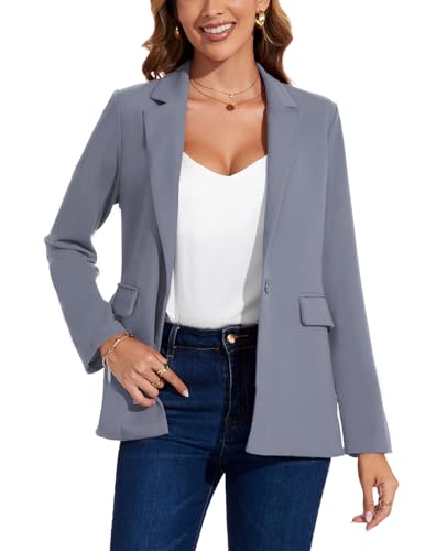 HOT ! MINTLIMIT Women Suit Jacket Button Front Notched Lapel Blazers Suits Cardigan Formal Work Office, Grey, L