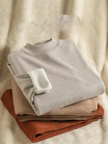 Men's Mock Neck Sweaters Winter Fleece-Lined Thick Warm Pullovers Solid Color Lightweight Classic Jumpers 7
