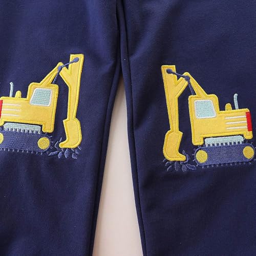 HOT ! Excavator Pants Toddler Baby Boys Fall Casual Sweatpants Drawstring Cartoon Graphic Embroidered Joggers with Pockets