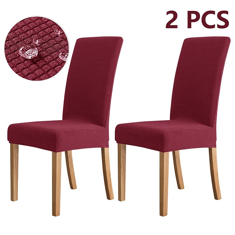 HOT ! 2 Pcs Dining Chair Cover Burgundy Water Repellent Stretch Chair Seat Slipcover Spandex with Elastic Bottom Protector for Dining Room Wedding Ceremony Durable Washable