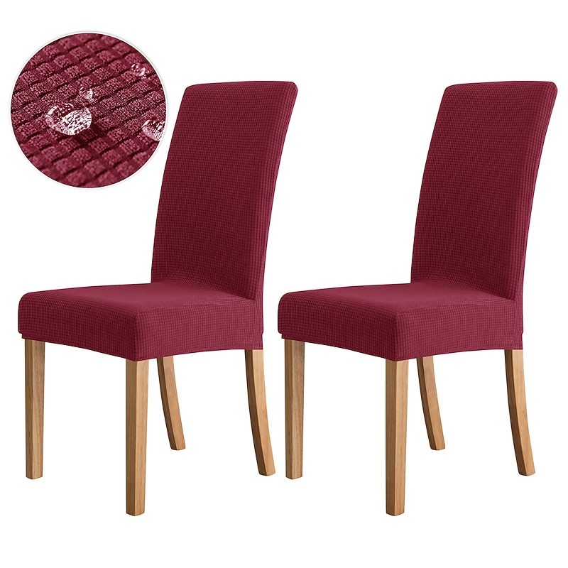 More information about 2 Pcs Dining Chair Cover Burgundy Water Repellent Stretch Chair Seat Slipcover Spandex with Elastic Bottom Protector for Dining Room Wedding Ceremony Durable Washable