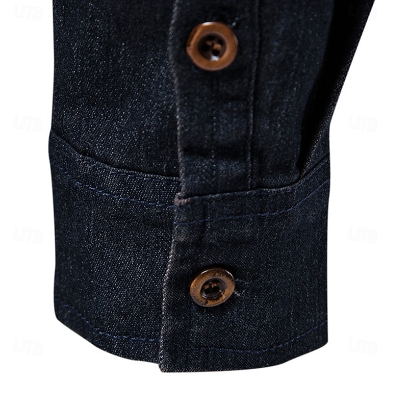 Men's Shirt Calico Shirt Casual Shirt Button Up Shirt Denim Shirt Plain Daily Vacation Light Blue Black Blue Dark Gray Long Sleeve Collar Spring & Summer Clothing Apparel 6