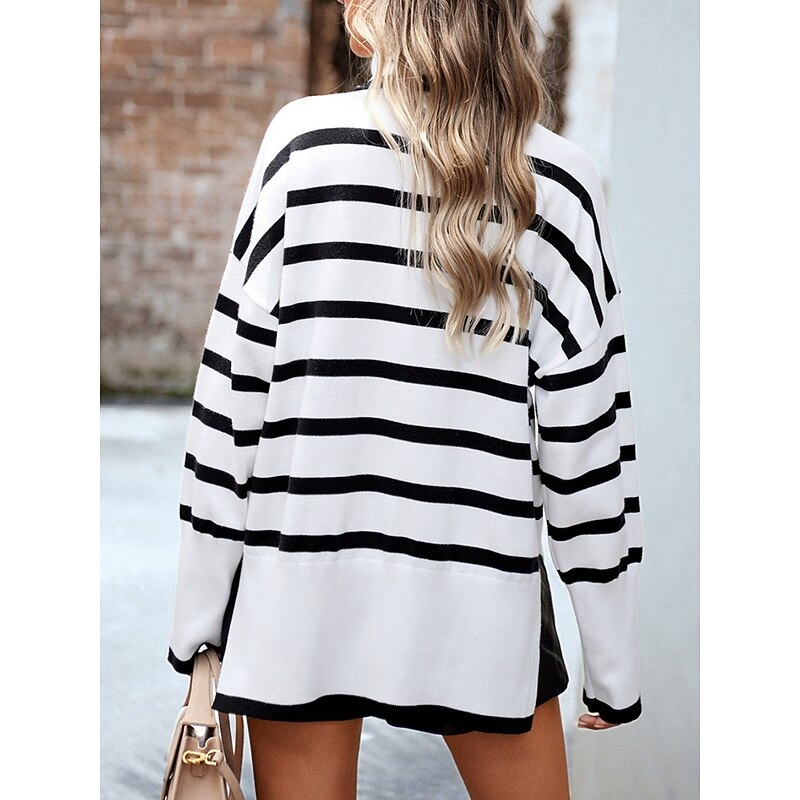HOT ! Women's Sweater Casual Soft Striped Ribbed Turtleneck Knitted Long Sleeve Regular Tops Knit Outdoor Daily Weekend White Brown Fall Winter
