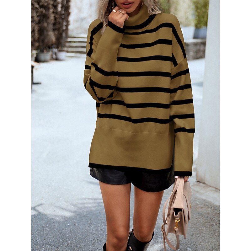 More information about Women's Sweater Casual Soft Striped Ribbed Turtleneck Knitted Long Sleeve Regular Tops Knit Outdoor Daily Weekend White Brown Fall Winter