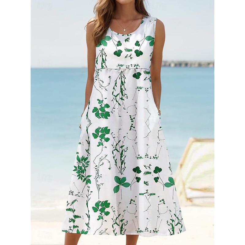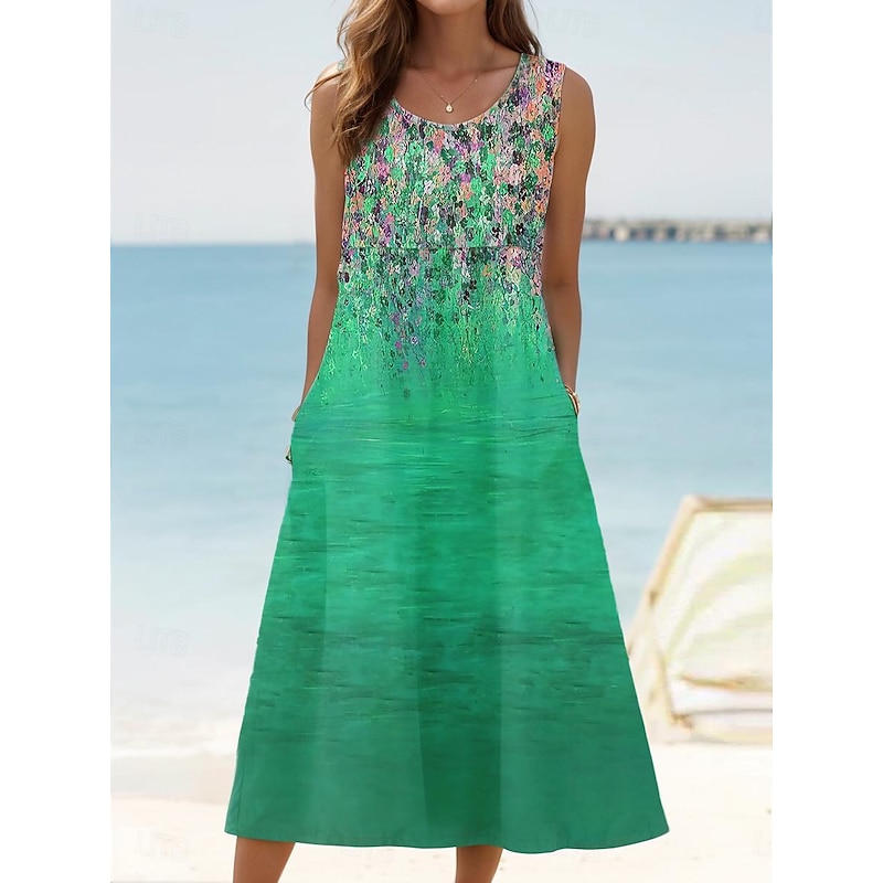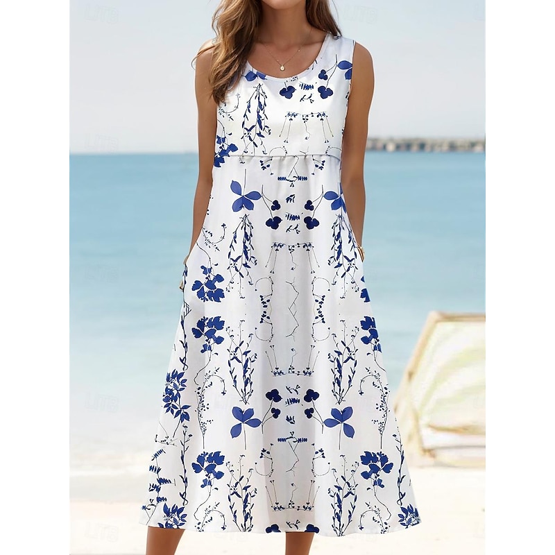 More information about Women's Sundress Tank Dress Summer Dress Print Dress Active Fashion Hawaiian Vacation Holiday Beach Loose Fit Sleeveless Crew Neck Aqua Blue Cream Wine Red Summer Spring