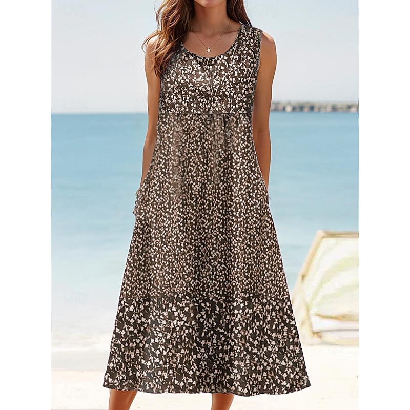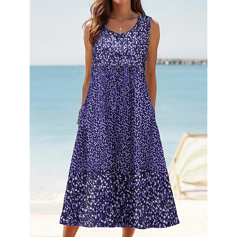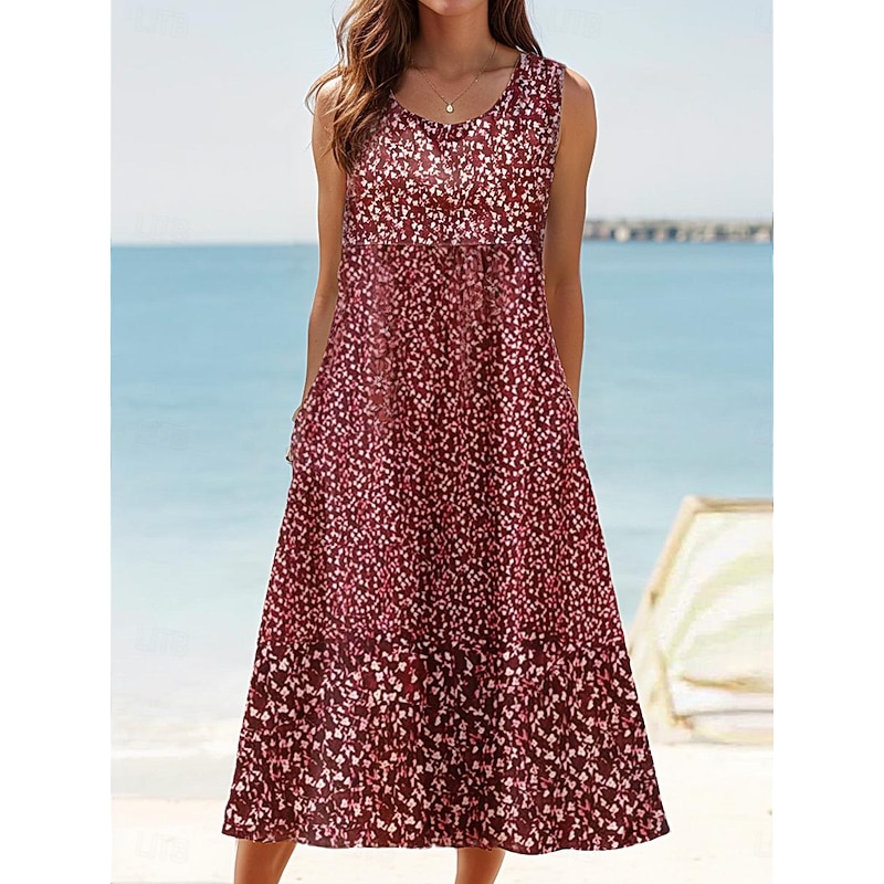 HOT ! Women's Sundress Tank Dress Summer Dress Print Dress Active Fashion Hawaiian Vacation Holiday Beach Loose Fit Sleeveless Crew Neck Aqua Blue Cream Wine Red Summer Spring