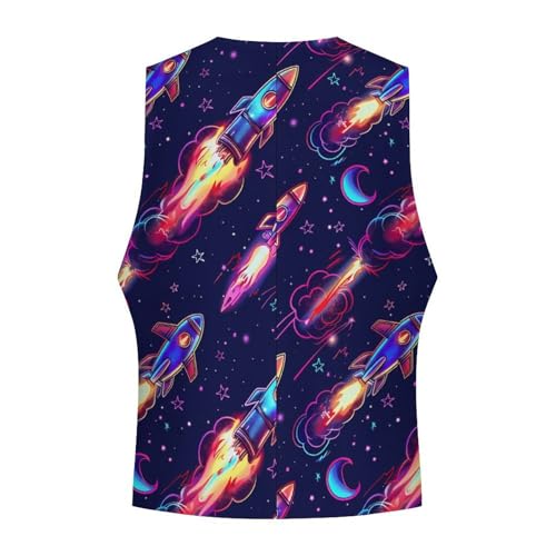Neon Rocket Launch Men's Suit Vests Business Formal Dress V-Neck Waistcoat Tops with 2 Pockets 1