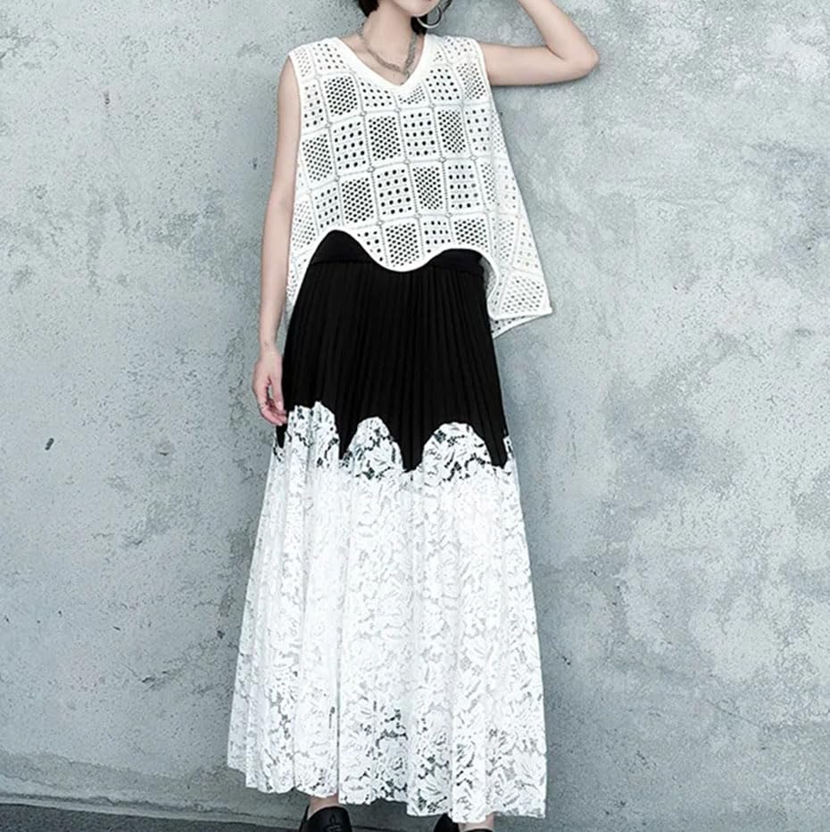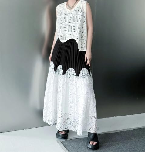HOT ! Women's Vintage Maxi Skirt Party Patchwork Lace Irregular High-Waisted Pleated Long Skirts