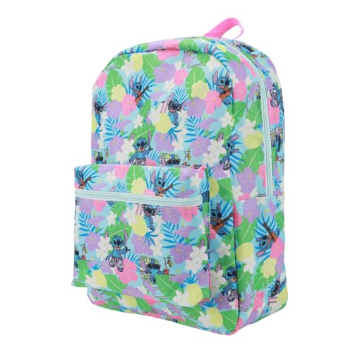 • CUSTOM DESIGN: This 18-inch backpack has been custom-designed to feature a bright and colorful all-over print of Stitch, Stitch playing guitar, and familiar Hawaiian motifs - the perfect school, work, or travel accessory for Disney's Lilo & Stitch fans!