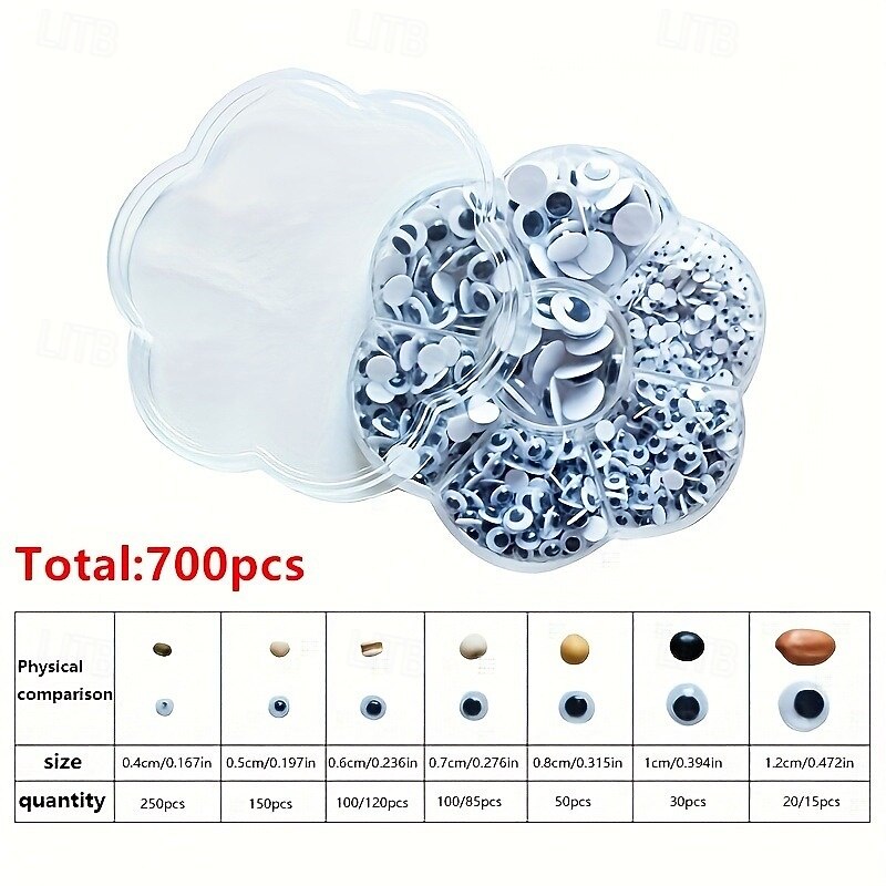 700PCS Plastic Wiggly Googly Eyes Set for Dolls and Crafts Assorted Sizes 4-12MM Suitable for Ages 14 1