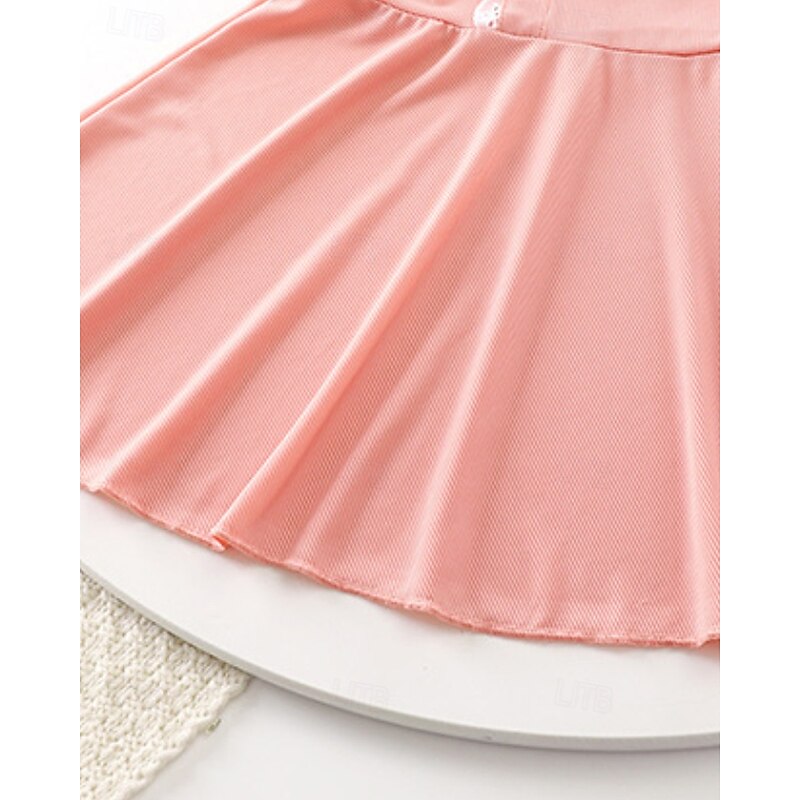 More information about Kids Girls' Dress Solid Color Short Sleeve Outdoor Ruched Buttons Cute Adorable Polyester Knee-length Casual Dress Summer 4 years+ Yellow Pink Purple