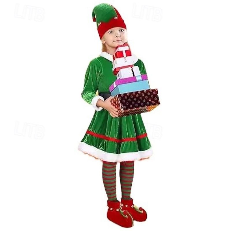 More information about Elf Outfits Fancy Costume Christmas Costume Women's Girls' Cosplay Costume Adults Kid's Christmas New Year Christmas Eve Christmas Party Dress Belt Socks Shoes Hat