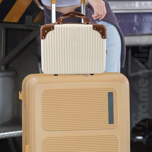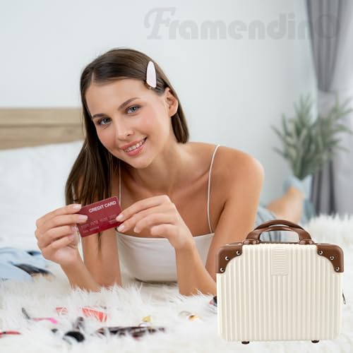 HOT ! Framendino, Portable Hard Shell Cosmetic Suitcase Makeup Travel Case Beige