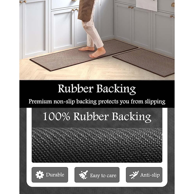 Kitchen Rugs & Mats Non-Skid WashableAnti-Fatigue, Non-Slip Absorbent Woven Runner Rubber Backed for Floors, Machine Washable Farmhouse Standing Mats for Sink, Laundry Room, Hallway 2