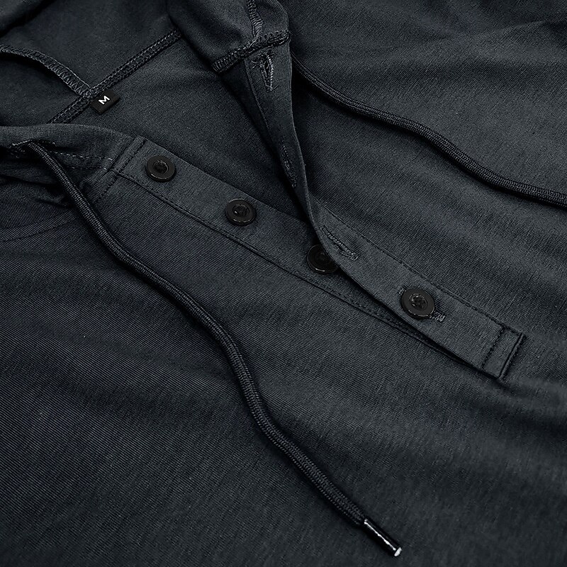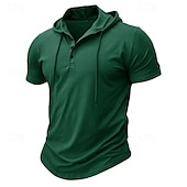 Highlights - Stay stylish and comfortable this summer with our men's Henley shirt - Perfect for vacation wear, this hoodie neckline adds a cool touch to your outfit - Get ready for the season with our must-have summer top