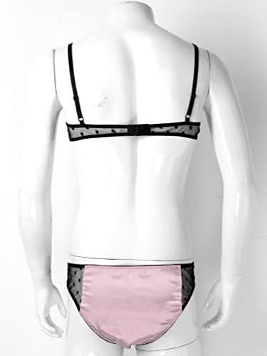 • Men Sissy Satin Lingerie Mesh Bra Pouch Panties Two Piece Crossdress Nightwear Sleepwear Outfit