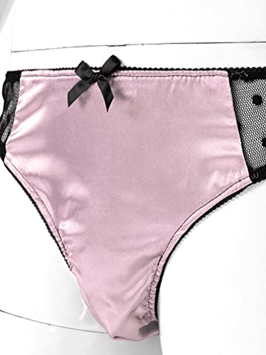 • Soft and smooth satin touch feeling, see-through mesh at the front chest and both side of waist, decor with bowknot