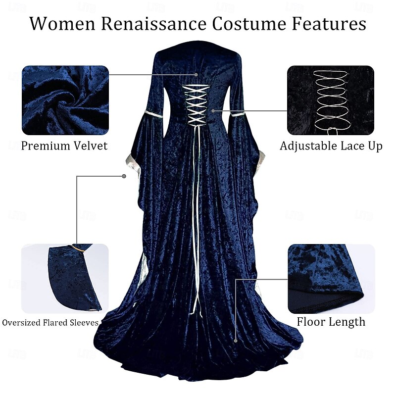 More information about Women's Renaissance Dress Medieval Costume Velvet Trumpet Sleeve Queen Dresses Outlander Plus Size Retro Vintage Long Sleeve Floor Length
