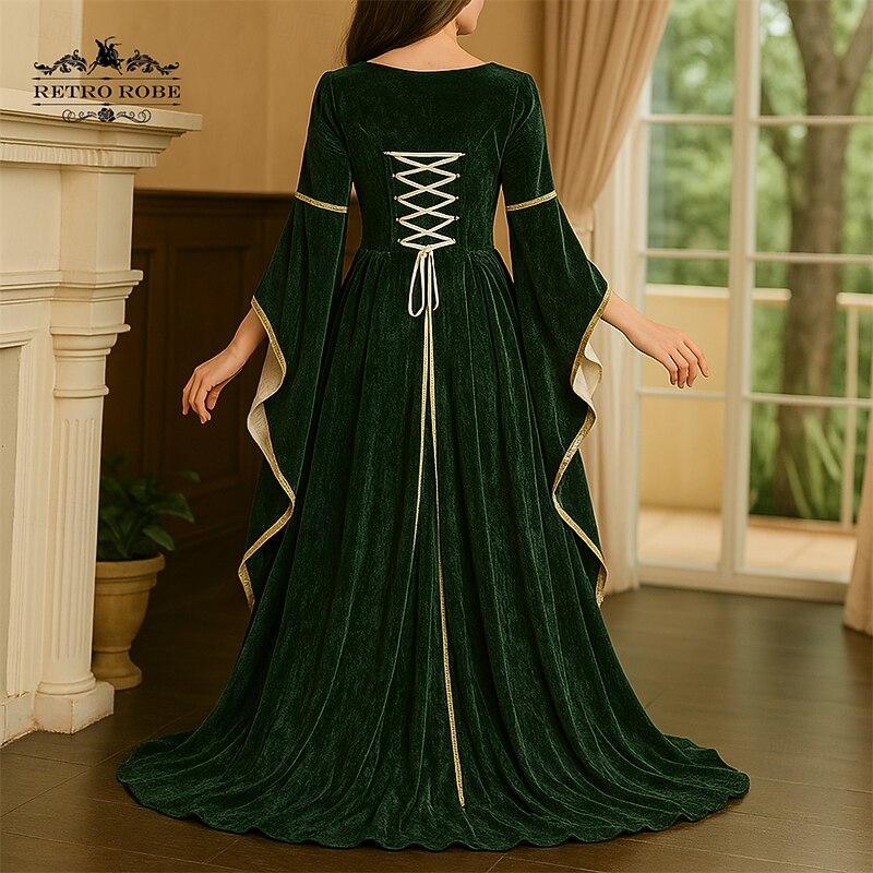Women's Renaissance Dress Medieval Costume Velvet Trumpet Sleeve Queen Dresses Outlander Plus Size Retro Vintage Long Sleeve Floor Length 1