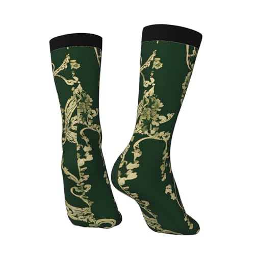 (Hunter Green Floral Petals Pattern) Mid Calf Socks Breathable Adult Unisex Socks Daily Wear For Women Men 6