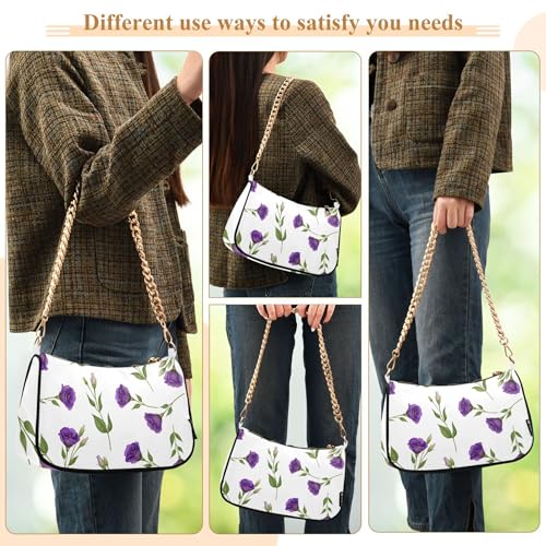 Purple Floral White Handbag Medium Womens Ladies Shoulder Bag Floral Zipper Hobo Purse Clutch with Chain Strap 3