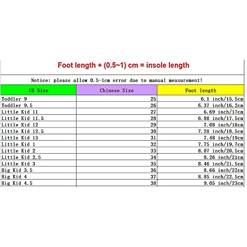 • Please Check the size details on descriptions to choose your kids size,the child's feet grow fast,we suggest you choose one size larger.Thanks!